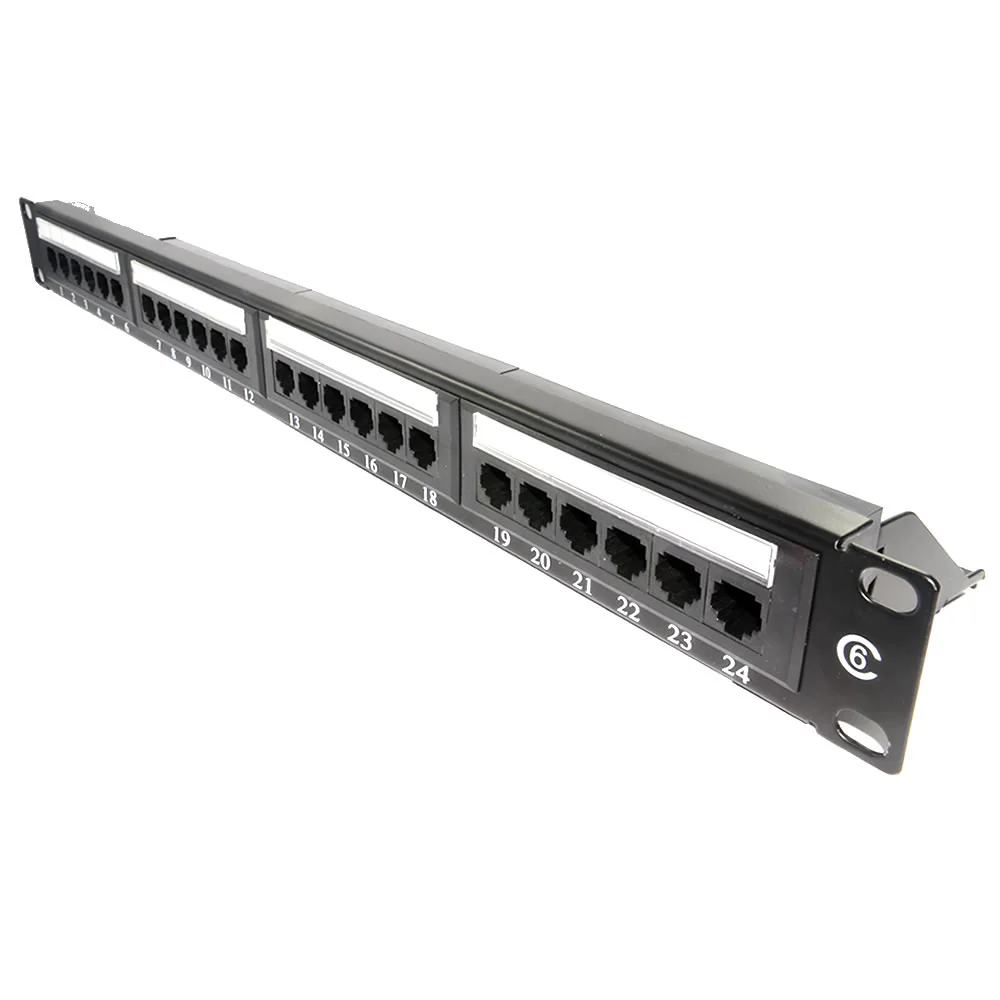 Compatible with 10″ and 19″ rackmount systems, it supports Cat5e and Cat6 networks with multiple port configurations.